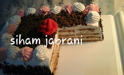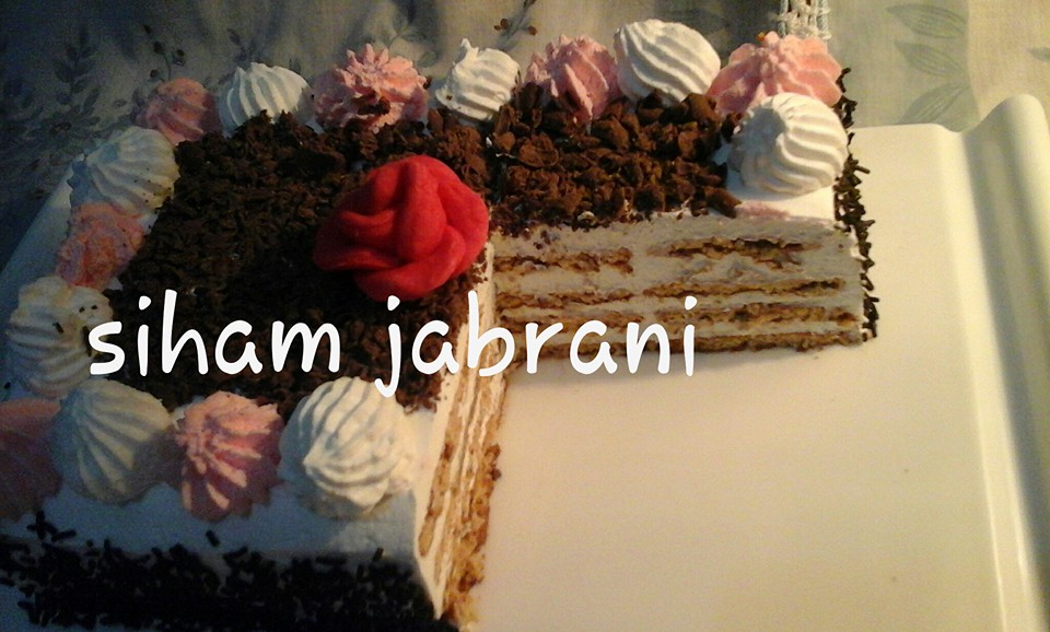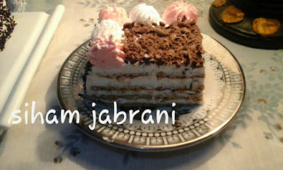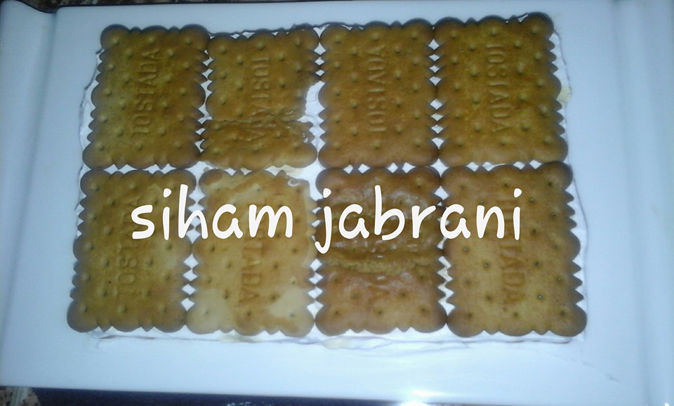ثم الكريمة و طبقة الاخيرة من البسكوي والكريما