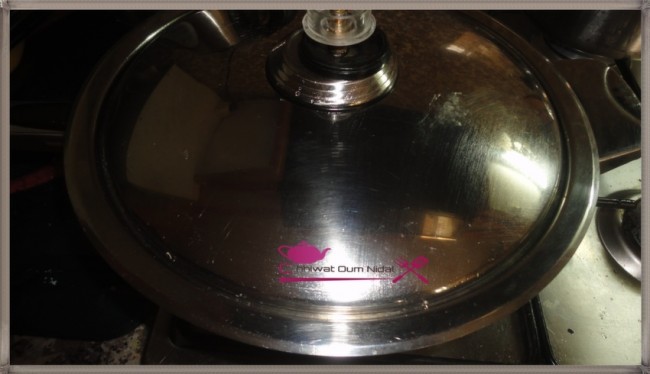 ثم نصفف الخضر طبقات فوق بعضها في مقلاة أو طنجره (من الأفضل استعمال مقلاة ليسهل قلبها)
