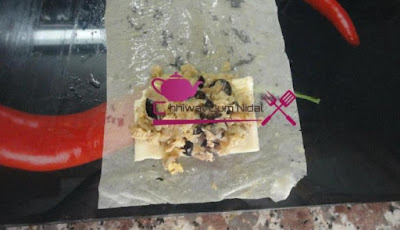 نلصق آخر الورقة بخليط الدقيق و الماء