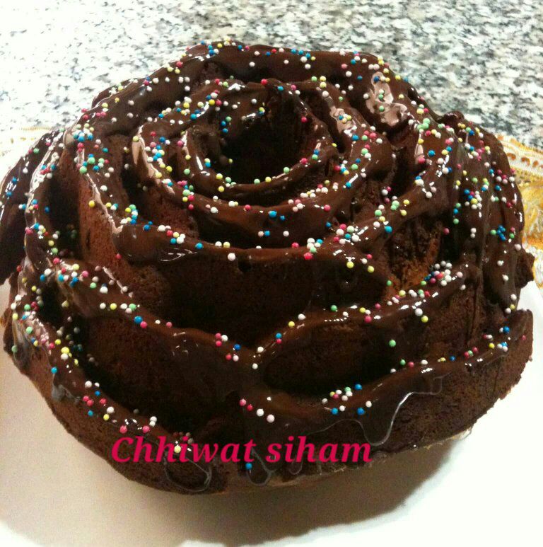 نصب الخليط في المول و ندخله للفرن متوسط الحرارة حتى يستوي الكيك