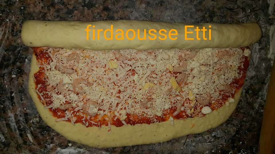 و نزيد سوريمي محكوك والكروفيت و الموزاريلا و ندور العجين و نقطعو فحال شنيك
