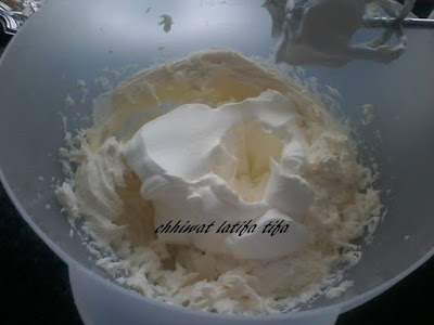 ثم نخلطه مع خليط المسكربون شيئا فشيئا حتى ننتهي
