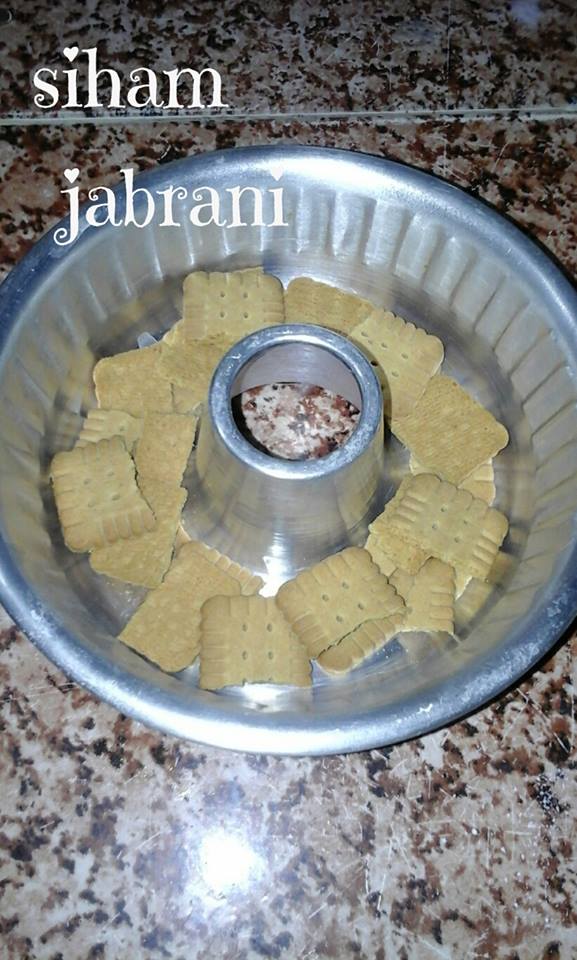 ناخد اي نوع بسكوي و نضعه في قعر القالب