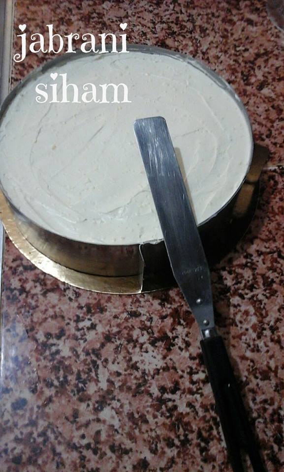 تغطى بالكريمة المتبقية وتدخل للثلاجة لمدة 4ساعات حتى تتماسك جيدا