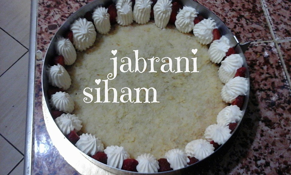 مقادير الجنواز :نطرب 3بيضات جيدا مع كأس سكر حتى يتضاعف حجمها،ثم نضيف 1سكر فاني وكأس دقيق مع 1خمارة الحلوى ونحرك غير بالمهل بملعقة خشبية وندخلها لفرن ساخن من قبل حتى تطهى ونخرجها ونقسمها الى قطعتين ونأخد الجزء الاول من لاجنواز ونحاول يكون اصغر من الاطار ويسقى بالسيرو وناخد الفريز نقطعه الى نصفين ونوزعه على جوانب الاطار