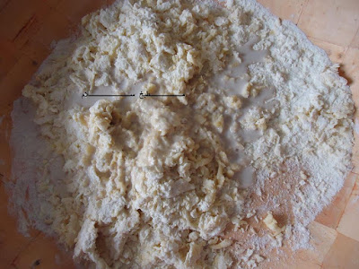 ندخل في العجين الزبدة جيدا جيدا سيصبح العجين رخو ، نلم بالطحين ونعجن جيدا حتى نحصل على عجين متماسك وطري ومتجانس
