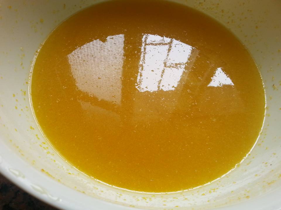 في إناء نضع قشرة الليمون، عصير الليمون، قشرة الحامض، عصير الحامض و السكر و نتركه في الثلاجة ليلة كاملة مع التحريك مرة مرة ليذوب السكر