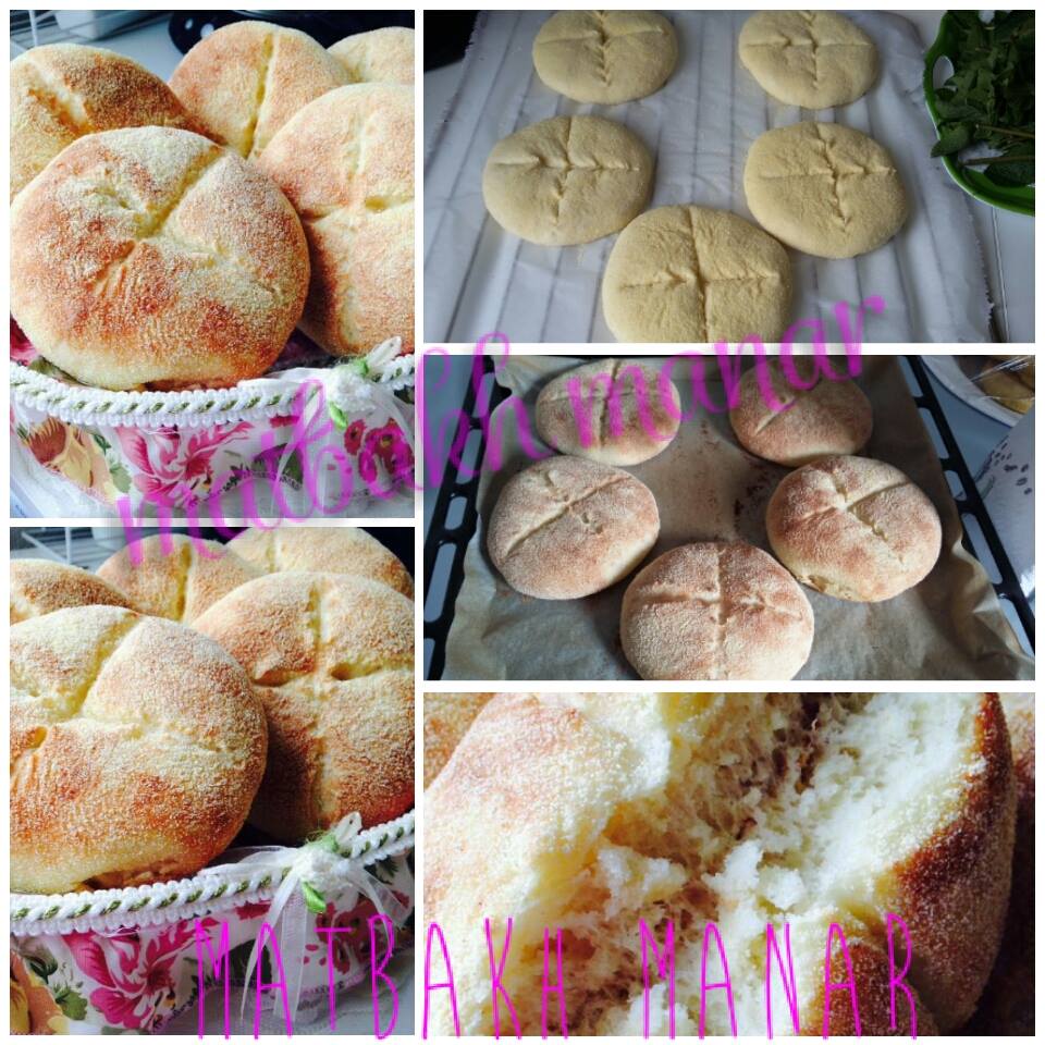 من بعد تندير منها كريات صغيرة وتنكرصها رقيقة في السميدة ماشي الفينو. وتنحطهم في لاطة الفرن( ماشي تحطيهم فشي بلاصة ملي يخمرو تهزيهم في لاطة ) غي تنكرصهم تنحطهم مباشرة في لاطة يخمرو فيها ملي تيضاعف حجمهم تنشرطهم بموس من الافضل تكون زيزوار جديدة باش ما تهبطش لكم الخبز. وتطيبهم عادي كاي خبز تيجيو رطبين ويليقو للمناسبات تماما بحال خبز المخبزة