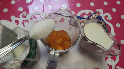 في الخلاط الكهربائي نضع 2 حبات كاكي مع سكر و نصف لتر حليب و