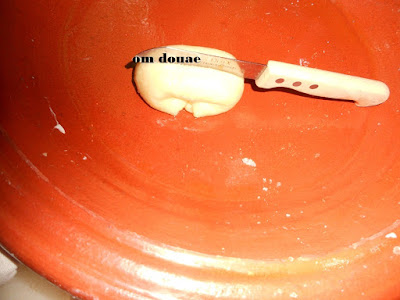 نجمع الكل بالحليب الدافئ نشكل من العجين كرات صغيرة