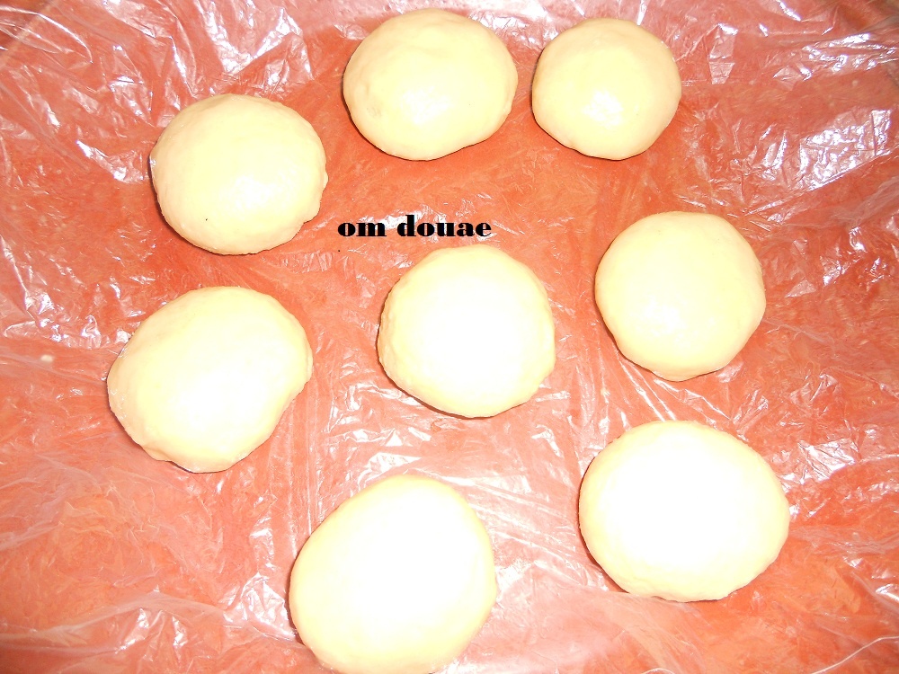 من بعد نطلق كل كرة ندهنها بالقليل من الزيت مخلط مع الزبدة