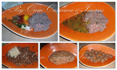 : 200 غ كفتة + 1 بيضة + 3 م ك خبز محمص محكوك + نصف م ص تحميرة + نصف م ص كامون + ربع م