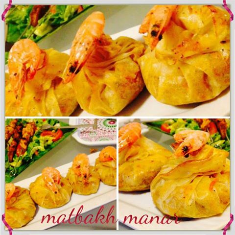 ورقة البسطيلة تنفضل ندهنها غي بالزيت باش تجي مقرمشة مزيان وتنعمرها على شكل سرة وتنثبت شكلها باعواد الاسنان وتندهنها بالبيض باش تعطي لون زوين وندخلها للفرن وزينتها بحبات من الكروفيت