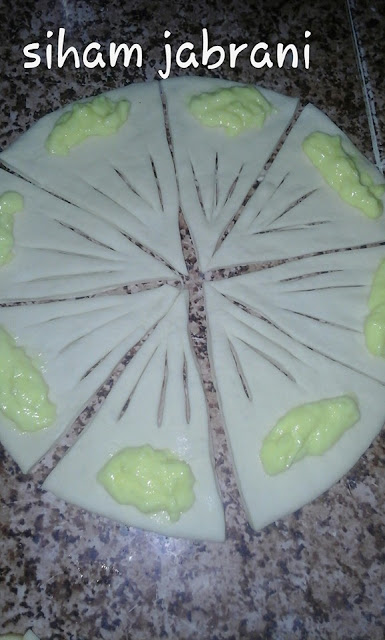 ثم نبسطه على شكل دائري و نقطعه الى مثلثات كما توظخ الصورة