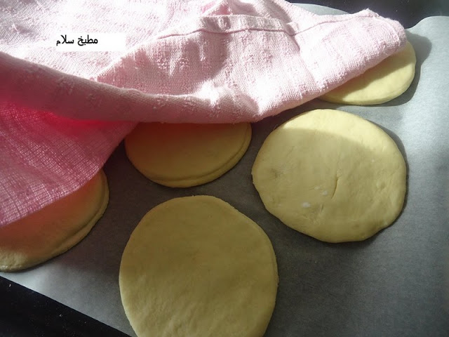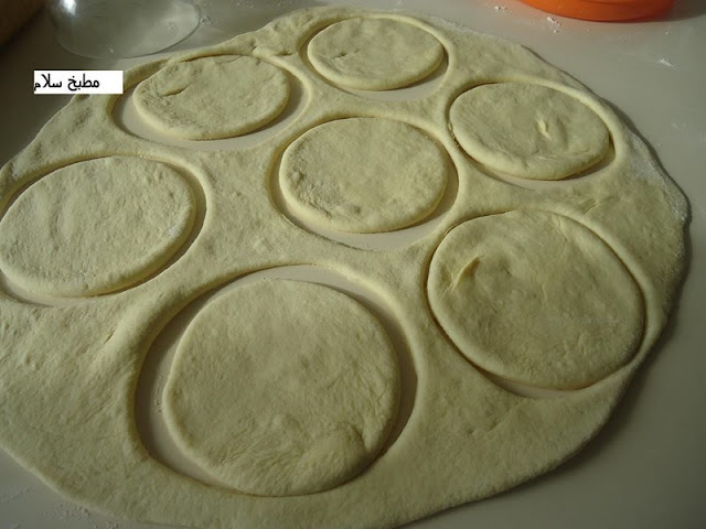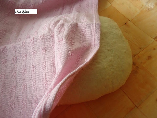 ونتركها حتى يتضاعف حجمها ونقوم بتسريح العجين فوق سطح مستوي