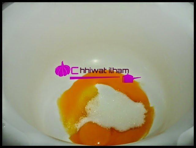 ناخد اصفر البيض مع السكر ونقوم بخفقه جيداااااااااا