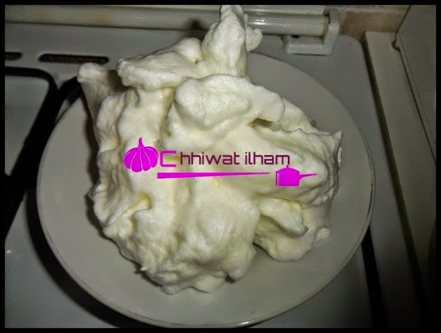 نطرب بياض البيض الى ان يصير متل التلج ونتركه جانبا