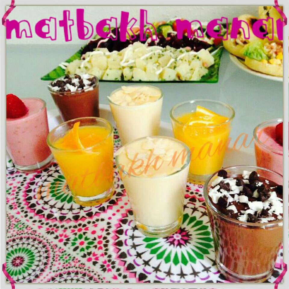 في كؤوس حتى يبرد ويتماسك . يمكن استبدال التوت بالفريز