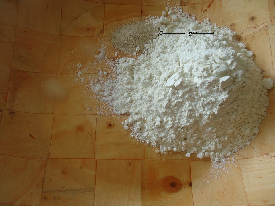 نخلط الطحين + الزيت + خميرة الخبز + السكر + الملح