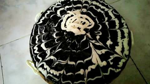 نخلطهم جيدا و نصبه فوق الكيك ثم الشوكولاطة البيضاء بالشكل الدي نريد