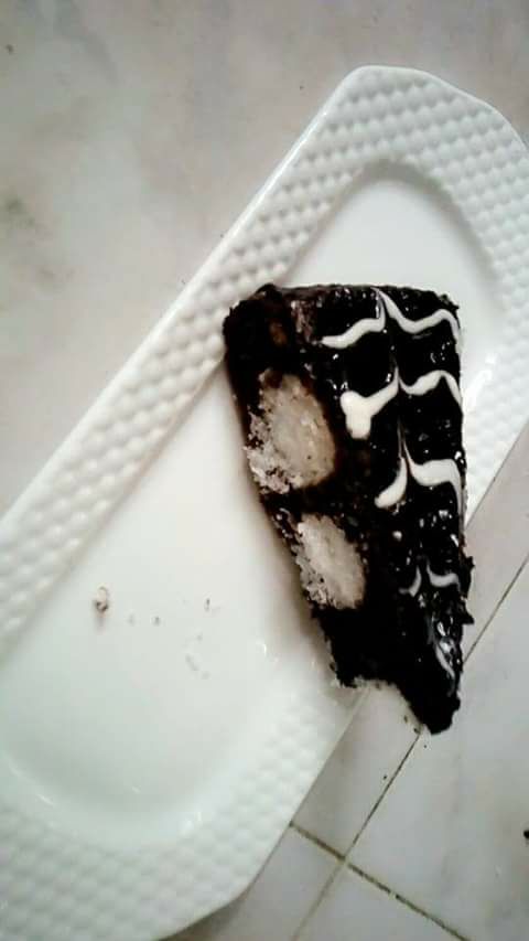 للتزيين ندوب تقريبا 5 قطع من الشوكولاطة السوداء مع دانيت و نصف كاس الخليط الاول الدي احتفظنا به