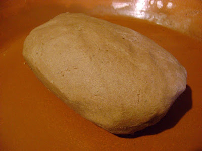 نبسط العجين بالمدلك بحيث نتركها سميكة قليلا و نفرغ الوسط كما تبين الصورة