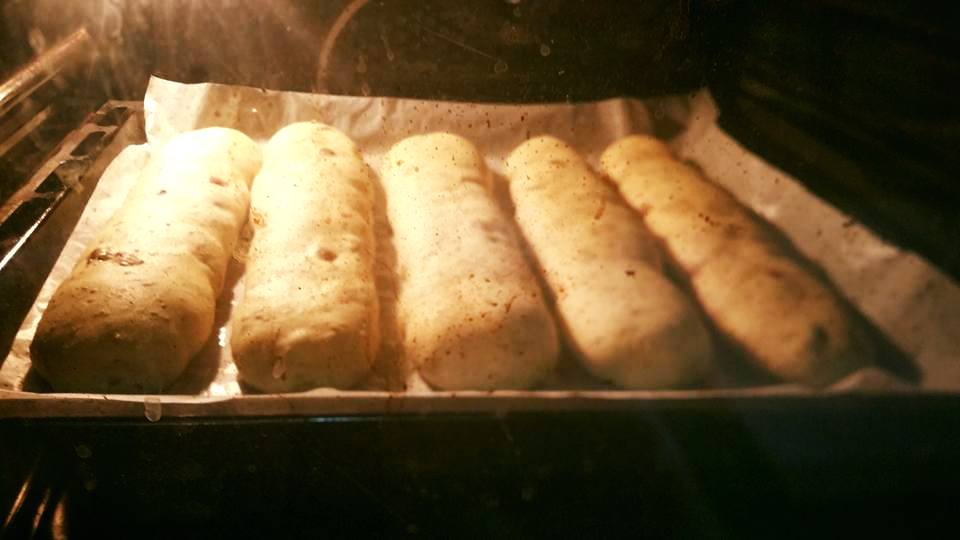 و نصففهم في صينية الفرن مدهونة بالزيت او على ورق الفرن ونتركهم ساعة ثم ندخلهم الفران