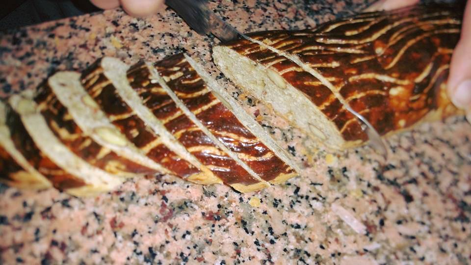 ثم يقطع وندخله الفرن ليتحمر وبالصحة والراحة