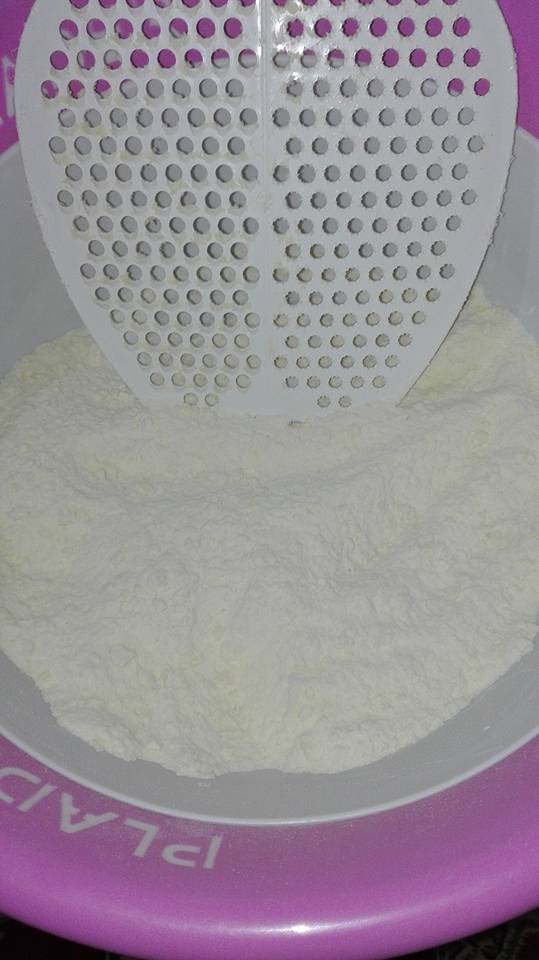 نمزج الزبدة بالدقيق حتى يتجانس الخليط كما في الصورة