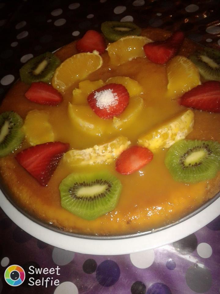 و نحضر كريمة السقي بحيث نضع كل مكوناتها على النار حتى تتماسك و نتركها تبرد و نسقي بها الكيك