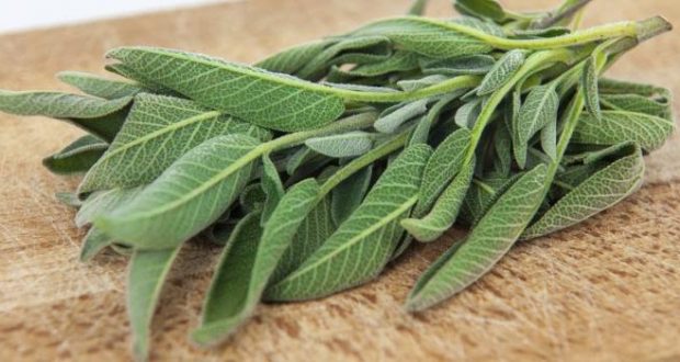 ملعقتين كبيرتين من عشب السالمية او المرمية ان كانت جافة او بعض الورقات ان كانت طرية