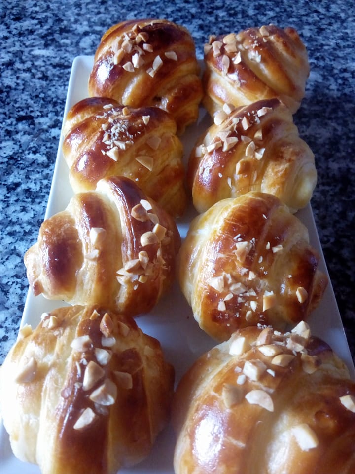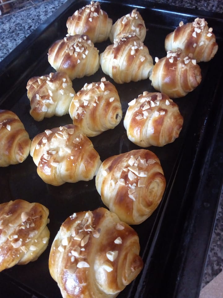 ونتركها تختمرثم ندهنها بصفار البيض مع قطرة صوص صوجا ونرشو باللوز مهرمش او كاوكاو او لوز ايفيلي وندخلها الفرن