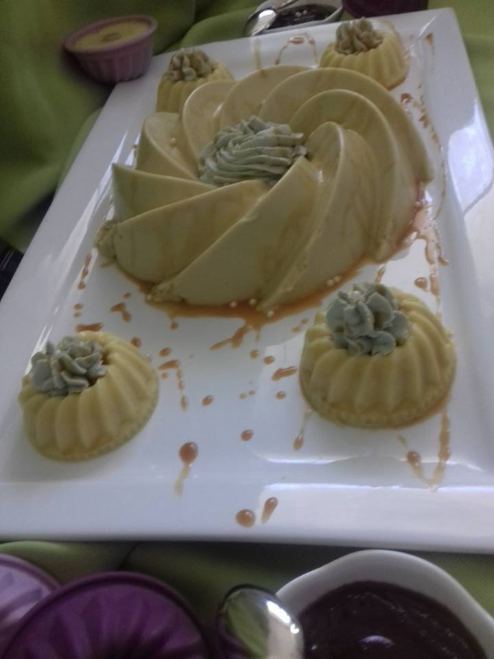 نزين طبق التقديم بالكراميل و نضع عليه الفلون