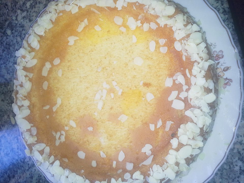 و نصب الخليط في المول العجيب و ندخلها للفرن و عندما نخرجها نقلبها في صحن التقديم و نحضر الكريمة كما تبين الصورة