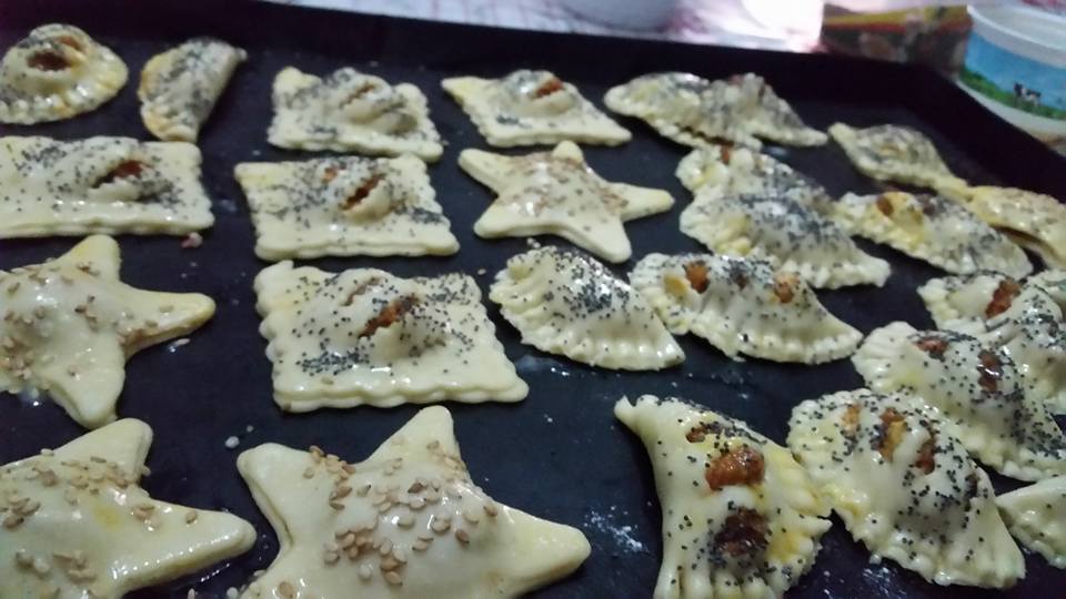 المهم على حسب المقاطع الموجودة و ندهن باصفرالبيض و نرش بالبافواو السمسم و ندخلهم للفرن