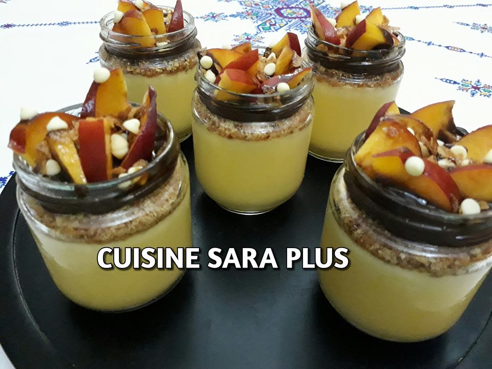 مقادير و طريقة تحضير تحلية رائعة بالخوخ و طبقة مقرمشة