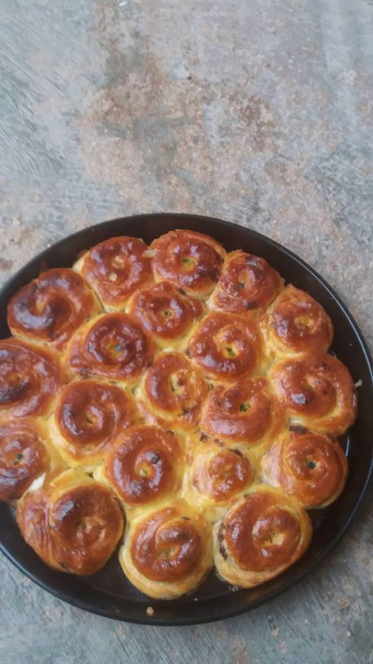 و نضعهم في صينية الفرن كما توضح الصورة و نتركهم حتى يتخمرو و ندهنهم