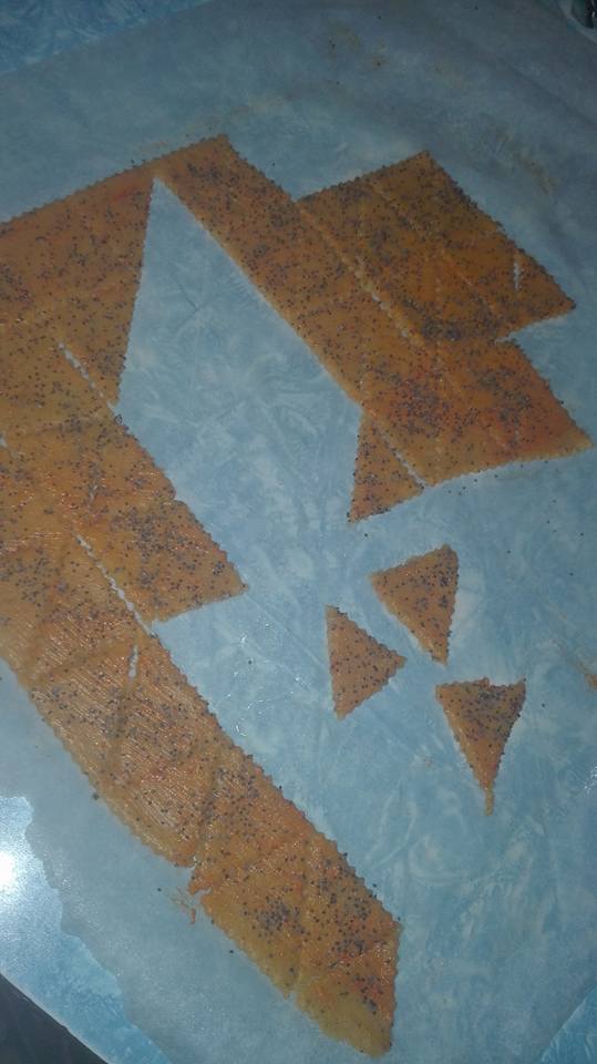 الجزء الثاني نبسطه و نرش عليه الزعتر مطحون و نقطعه مثلثات ثم نشكله كما في الصورة