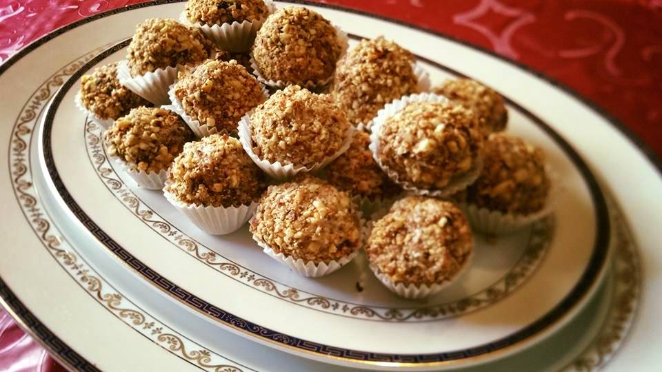 نشكل منه كويرات ونغطسهم في الشكلاط الابيض مذوب ونمررهم في اللوز محمر ومهرمش