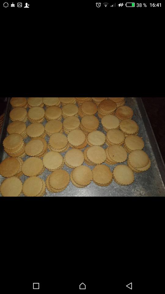 نعمل كويرات من العجين و نبسطها بعد ان نرش الدقيق و نقطع بمرشم دائري كما توضح الصورة و ندخلها للفرن