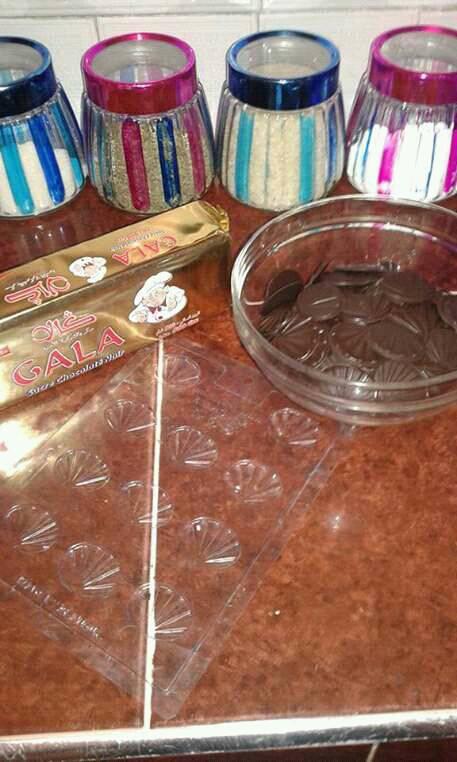 نديب الشوكولا و من الاحسن ان يكون من نوع كالا و نصبها في قوالب على شكل كوكياج و ندخلها للمجمد