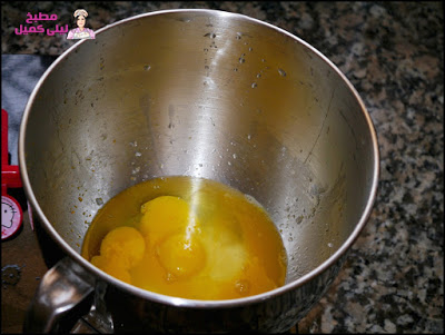 نطرب البيض مع السكر جيدا و نضيف له الزيت وعصير الليمون ونخلط