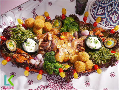 مقادير و طريقة تحضير كتف لحم بخلطة رهيبة مرفوق بسبع مقبلات راقية جدا و سهلة