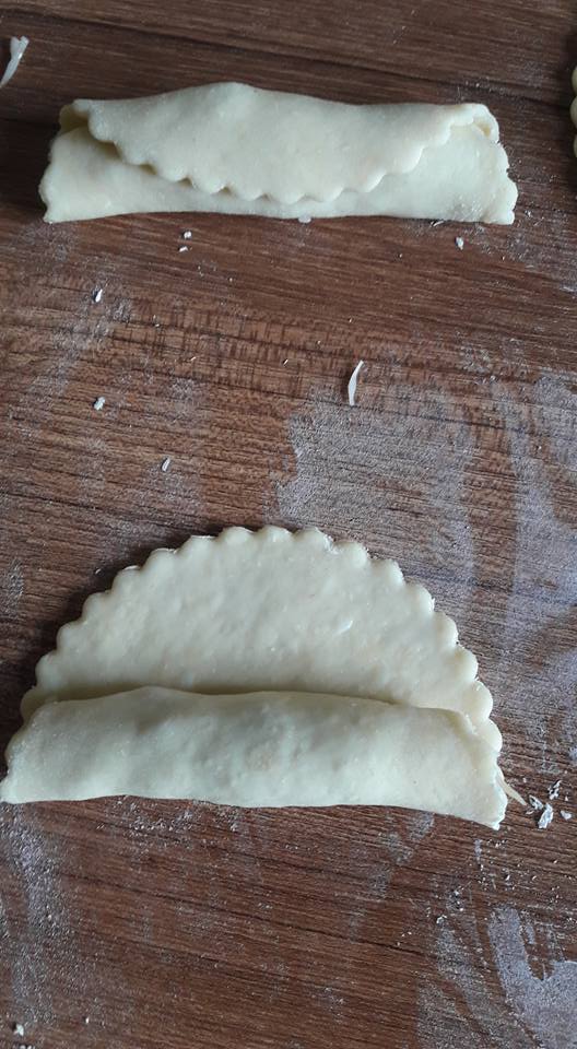 نبسط العجين و يجب ان تكون رقيقة ونقطعها على شكل دوائر