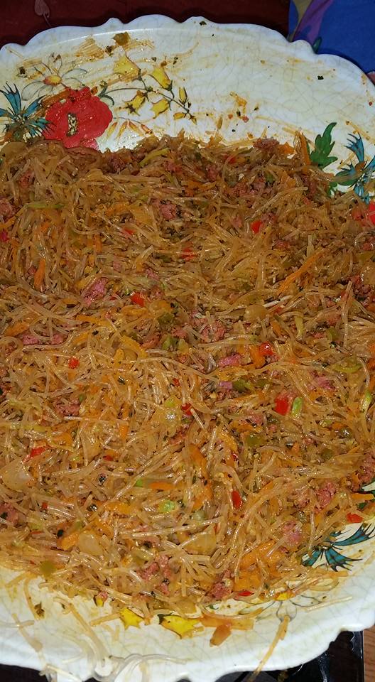 في مقلاة نضع البصل مقطع الى قطع صغيرة مع القليل من زيت الزيتون ثم الفلفل  الجزر و الكفتة القرع الاخضر التوابل و الثوم القزبر و المعدنوس الهريسة
