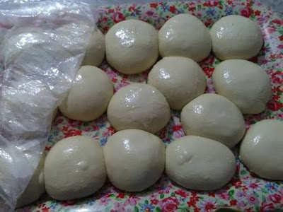 من بعد ندهن العجين بالقليل من الزيت نغطيها بالبلاستيك الغدائي و نتركها لترتاح