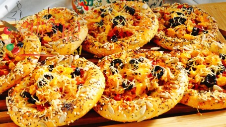 تدهن باصفر البيض من الجوانب و نرش الزنجلان و البافو و بدور نوار الشمس على الجوانب جيدا
