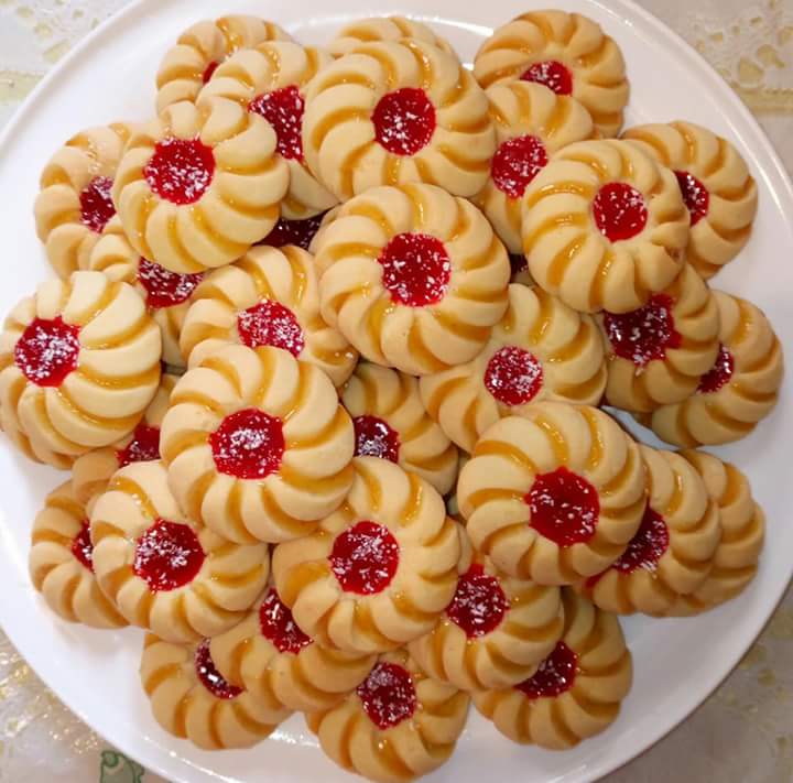 بعد اخراجها من الفرن تزين بالمربى و القليل من الكوك ونتركها حتى تجف و بالصحة و الراحة