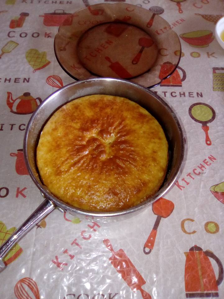 نمزج كل مكونات الكيك و ندهن الكسرول بالزبدة و نرش بالدقيق و نصب الخليط و نضع الكسرول على نار متوسطة حتى تنضج