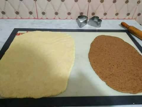 نقطع من عجين السميد و نضعها فوق عجين الثمر